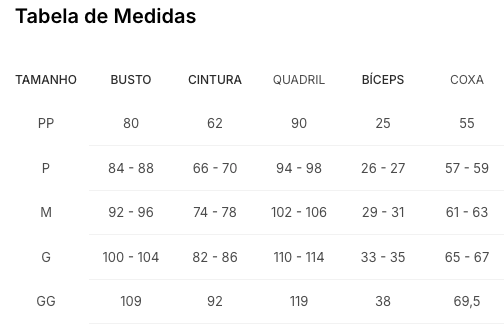 - Quadril: 87 cm